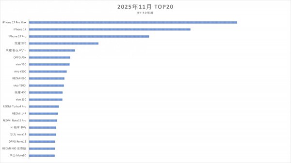11月国内手机畅销榜排行: 红米K90仅排第九, 第又名预感之中